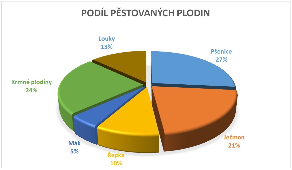 Z produktů vypěstovaných v těchto lokalitách můžeme nabídnout sladovnický ječmen, potravinářskou pšenici, řepku, krmné obiloviny a mák. Hospodaření rostlinné výroby je rozděleno na dvě výrobní střediska, středisko Dolní Újezd a Vidlatá Seč.
